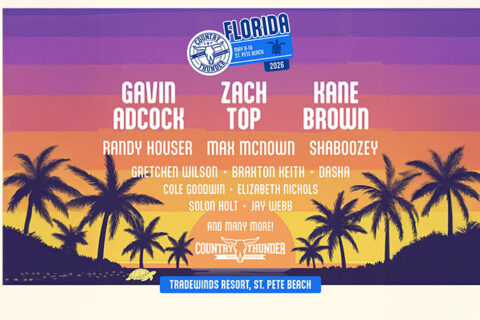 Country Thunder Florida is set to take place May 8-10 in St. Pete Beach on the 40-acre grounds of TradeWinds Resort. The festival location is a first for Country Thunder, which already hosts events in Arizona, Alberta, Saskatchewan and Wisconsin. The inaugural Gulf shoreline edition of the traveling country festival will feature headliners including Kane Brown, Zach Top, and Gavin Adcock, alongside top